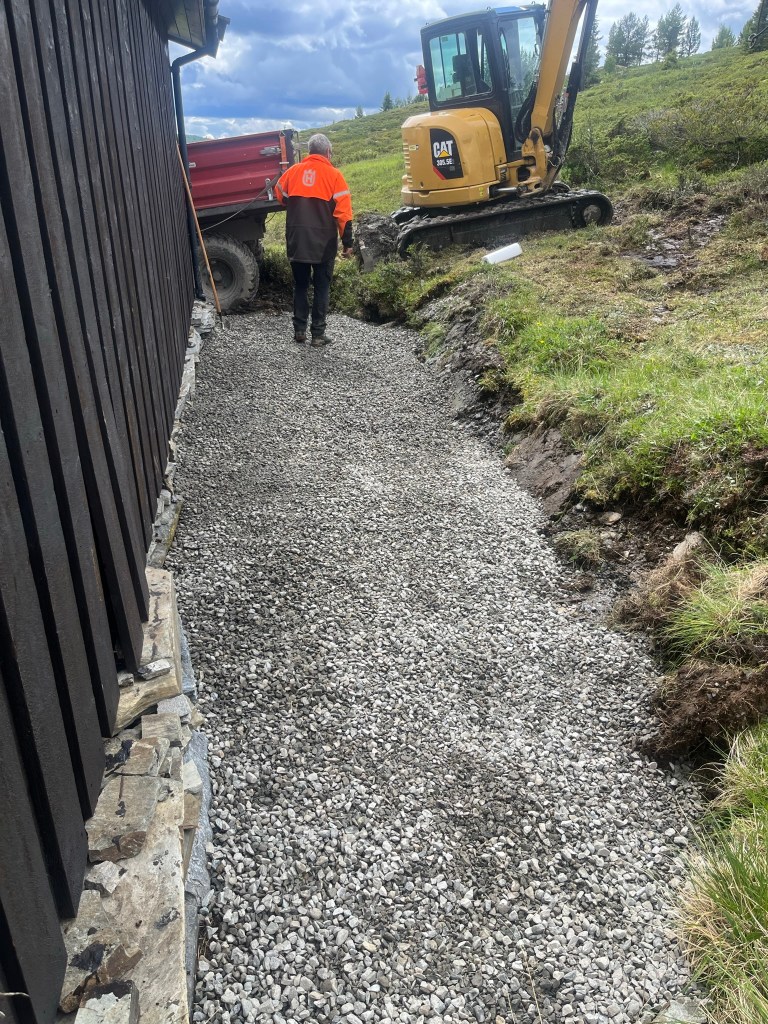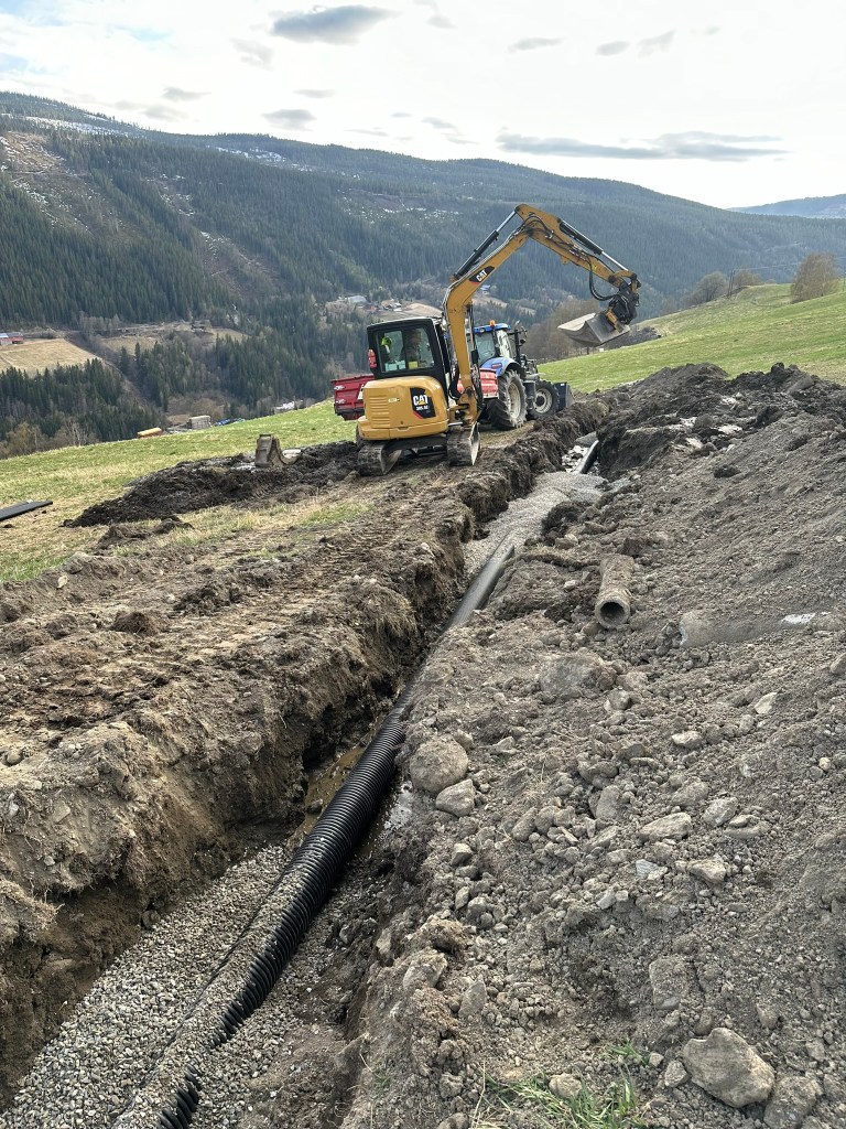 - Graving og drenering – grøfting, planering, tomtearbeid og drenering av eiendom.